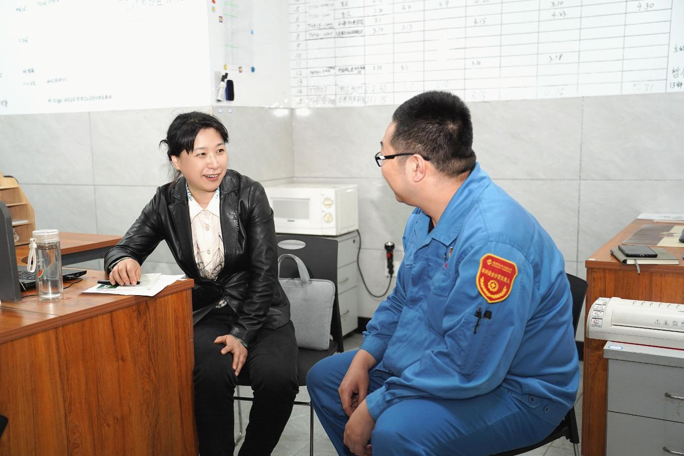 關(guān)明鑫一行走進(jìn)公司生產(chǎn)車間,與一線員工進(jìn)行了深入交流。