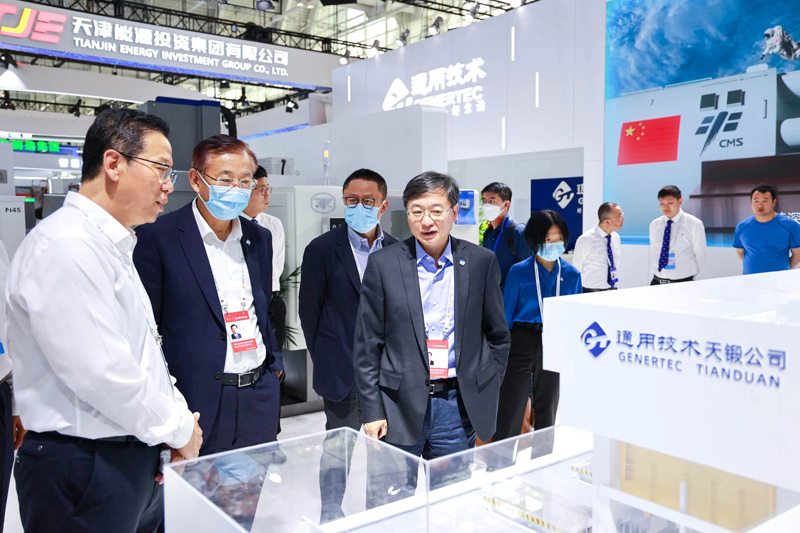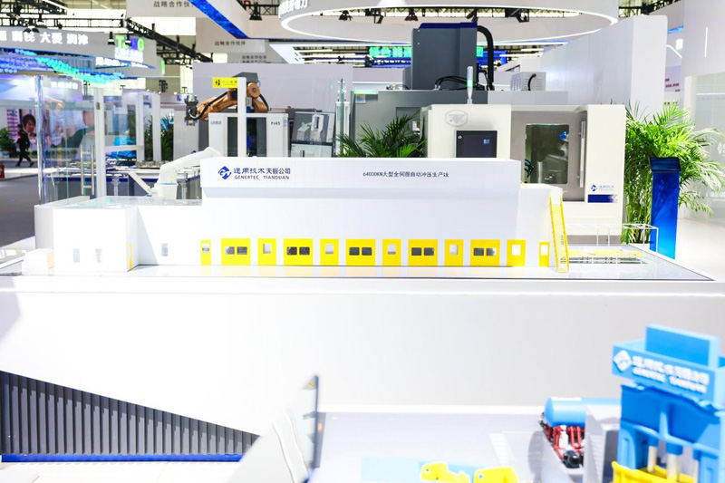 天鍛公司在此次展會上首次展出64000kN大型全伺服智能沖壓線、25000kN雙柱快鍛成套生產(chǎn)線裝備等重點(diǎn)產(chǎn)品仿真模型,積極展現(xiàn)公司在新能源汽車制造、新材料鍛造加工等領(lǐng)域的創(chuàng)新成果。