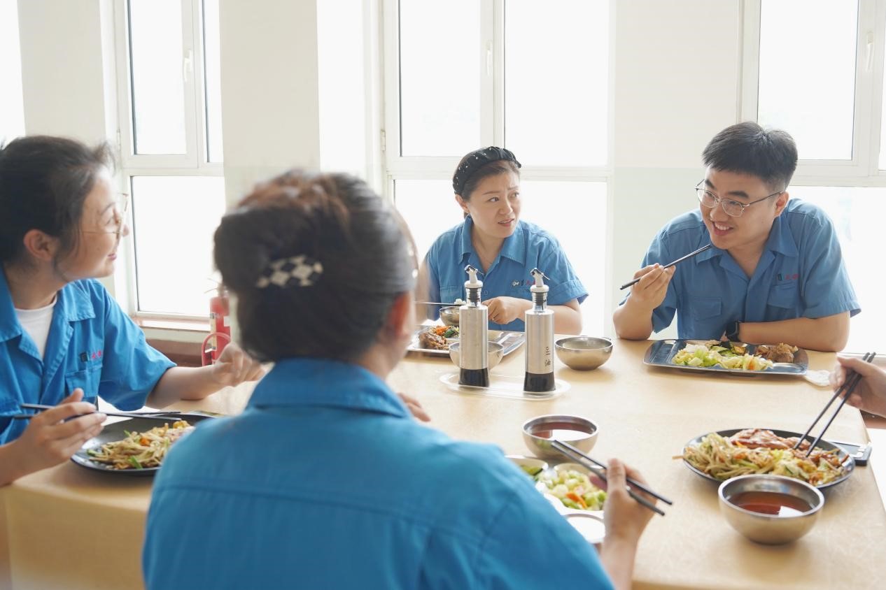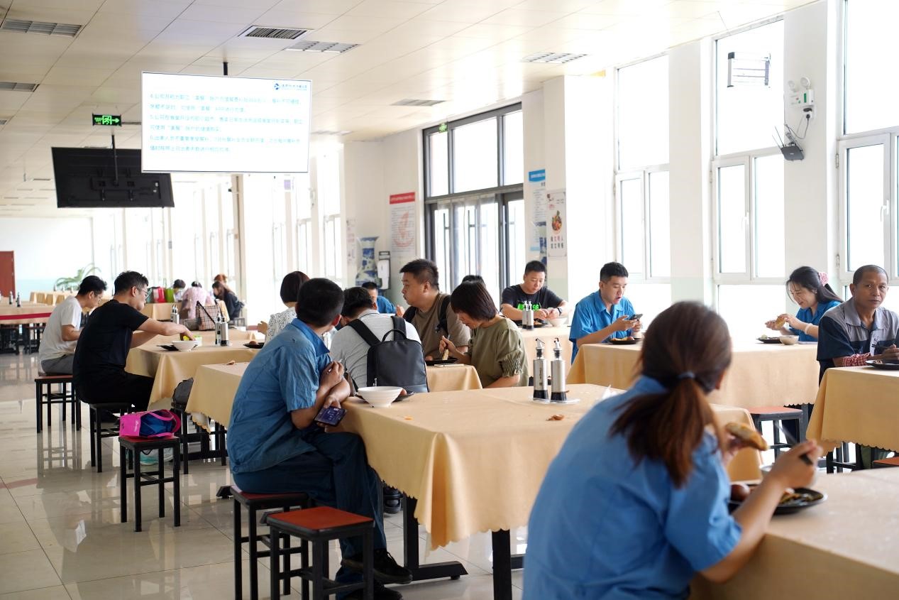 自7月1日起公司調(diào)整職工上班時間,改善食堂供餐。公司食堂增加了早餐,午餐由三菜一湯提升為四菜一湯,夜餐標準提高至晚餐的標準。