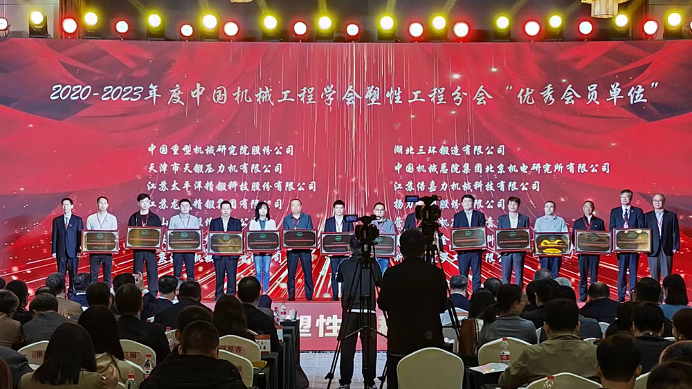 大會以“提高自主創(chuàng)新能力 扎實推進產(chǎn)業(yè)基礎(chǔ)再造工程”為主題,邀請了多位院士參加并作主旨報告。大會鑒于天鍛公司近三年來在塑性成形領(lǐng)域推進產(chǎn)學(xué)研用融合、開展科技創(chuàng)新等方面取得的突出成績以及對學(xué)會各項工作的大力支持,評選天鍛公司為2020-2023年度中國機械工程學(xué)會塑性工程分會優(yōu)秀會員單位。
