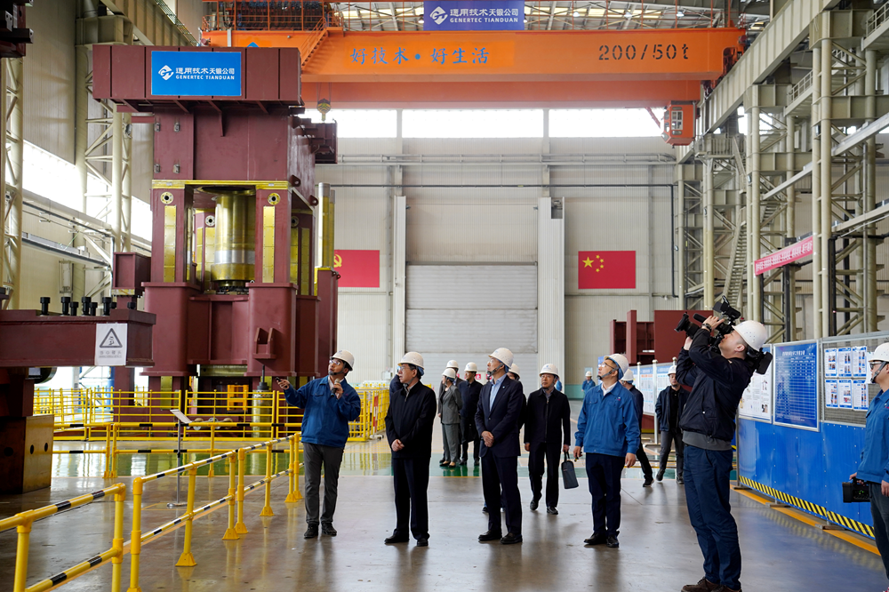 集團(tuán)領(lǐng)導(dǎo)陪同天津市人大常委會(huì)領(lǐng)導(dǎo)參觀調(diào)研了公司國際車間。公司董事長、黨委書記劉國福報(bào)告了集團(tuán)機(jī)床產(chǎn)業(yè)的整體情況和天鍛公司的基本情況,公司副總經(jīng)理王世明介紹了國際車間正在安裝調(diào)試的主要成品的技術(shù)特點(diǎn)和銷售情況。