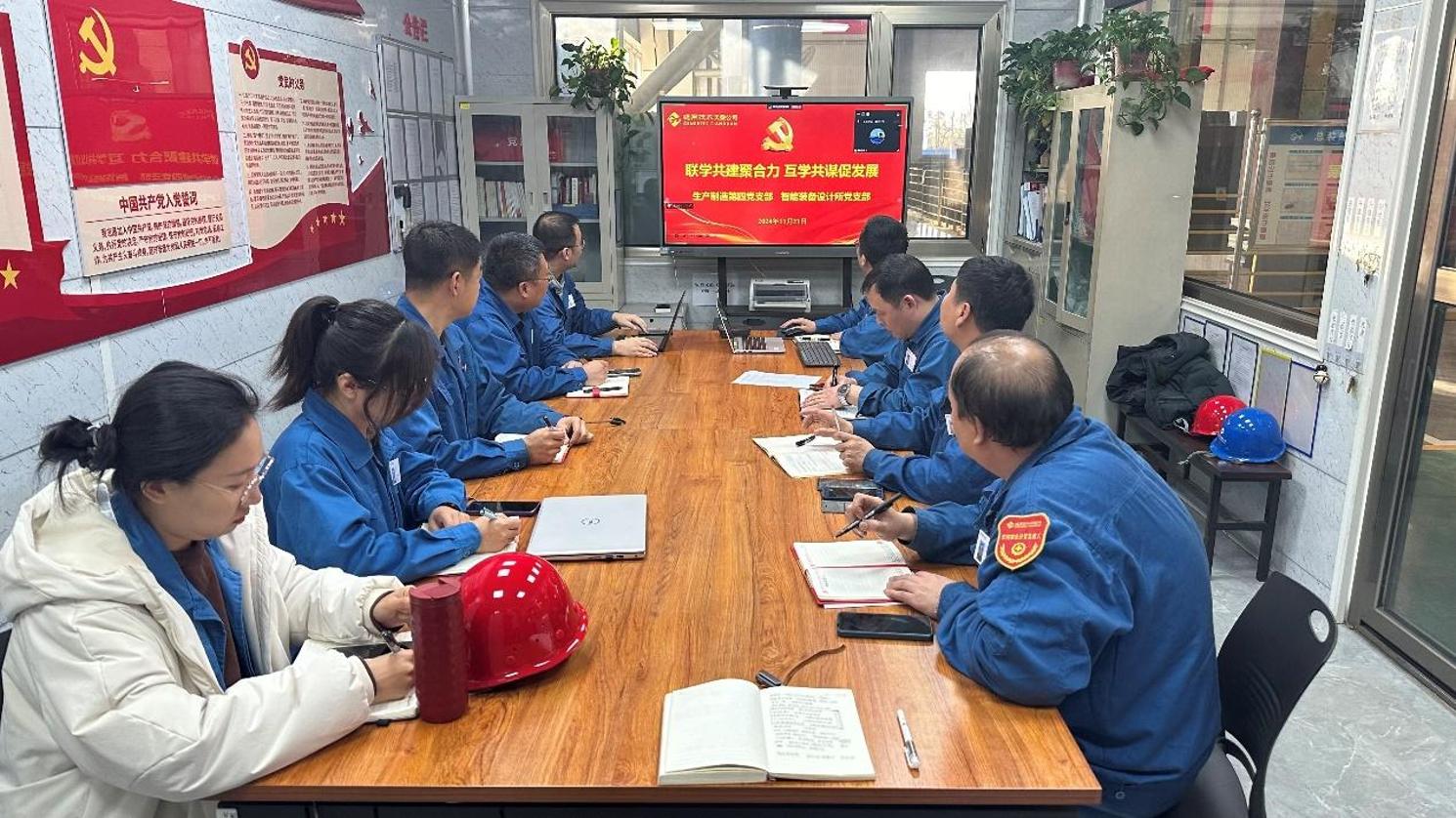 11月21日,智能裝備設計所黨支部與生產(chǎn)制造第四黨支部開展以“聯(lián)學共建聚合力 互學共謀促發(fā)展”為主題的聯(lián)學共建活動。雙方黨支部充分發(fā)揮黨建引領(lǐng)作用,推動黨建業(yè)務融合發(fā)展,就Stellantis、博俊、屹豐等重點項目在設計制造、安裝調(diào)試過程中出現(xiàn)的問題進行了深入探討,為后續(xù)熱成形壓力機質(zhì)量提升、順利交付奠定良好基礎。雙方黨支部將以此次活動為契機,進一步加強交流合作,攜手并進,提質(zhì)增效,努力實現(xiàn)黨建工作與業(yè)務工作雙融雙促。
