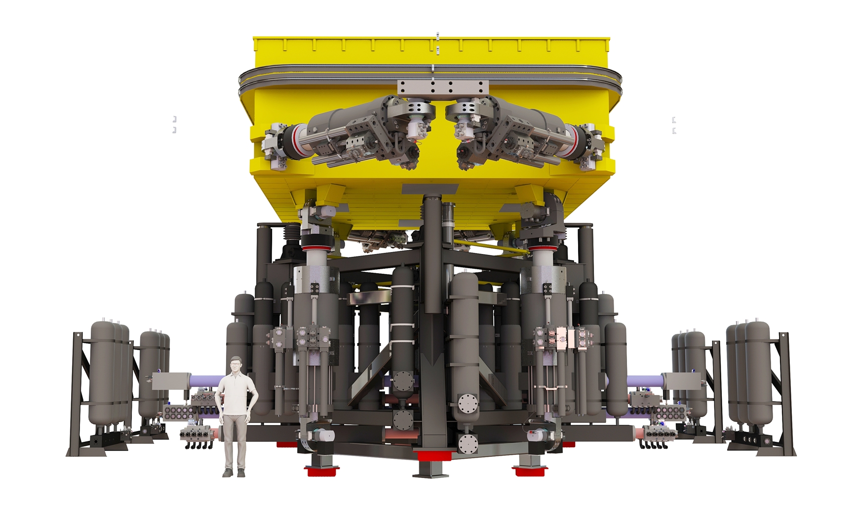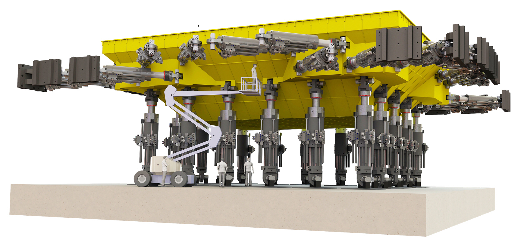 “國家大型地震工程模擬研究設(shè)施”是我國地震工程領(lǐng)域國家重大科技基礎(chǔ)設(shè)施,由天津大學牽頭,在天津建設(shè)。設(shè)施建成后,可大幅提升我國防災減災領(lǐng)域原始創(chuàng)新能力,對保障水利、土木、海洋、交通等重大工程的安全具有重要意義。其中,實驗中心的16m× 20m大型振動臺和6m × 6m 水下振動臺臺陣系統(tǒng),是整個試驗裝置中最核心部分。通用技術(shù)天鍛公司承擔全部振動臺臺體、液壓系統(tǒng)及輔助機構(gòu)的開發(fā)與制造,同時負責振動臺設(shè)備的安裝與聯(lián)合調(diào)試。